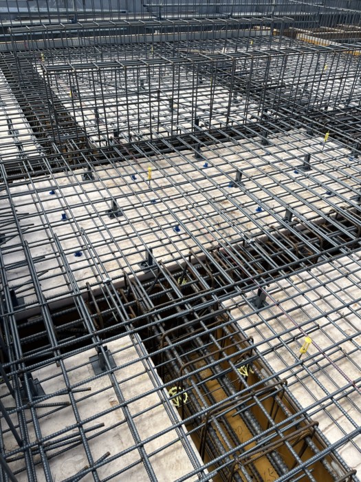 現在3階の梁スラブに向けて、先行で階段の配筋をしています!短い工期の中での作業なので先に組める場所は組んでしまって後に時間を残すことを意識しています。