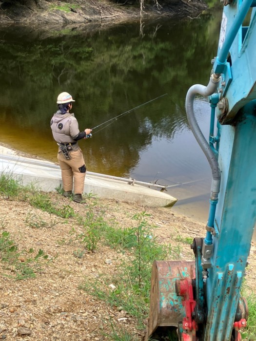 現場の横には大きな野池が……釣りをしない訳がない!!ってことで休憩時間に釣りをして楽しんでいましたꉂꉂ(>ᗜ<*)
